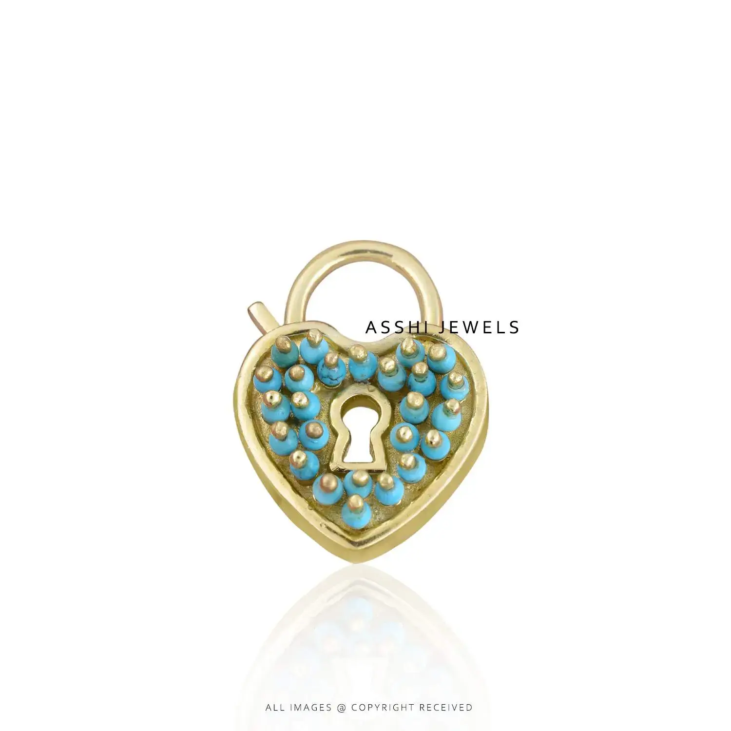 The warm glow of the yellow gold plating perfectly complements the cool tones of the turquoise, creating a harmonious and eye-catching accessory. The padlock symbolizes security, love, and connection, making this piece a meaningful statement for everyday wear or a thoughtful gift.