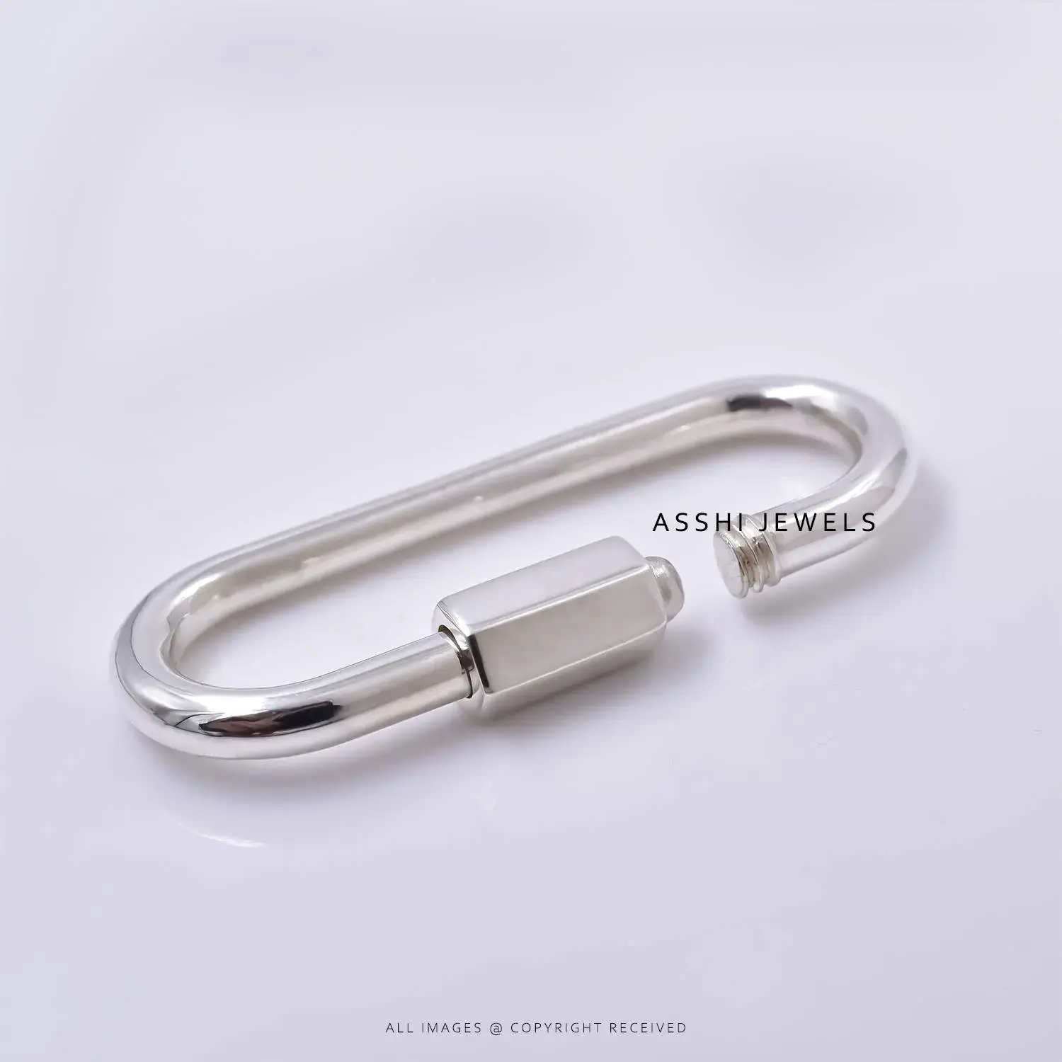 Make a bold and minimal statement with this 925 Silver Plain Large 50mm Carabiner Lock. Crafted from high-quality sterling silver, this oversized carabiner features a clean, polished surface and a strong screw-lock mechanism for secure use. The large 50mm size makes it ideal for statement pieces, layered looks, or functional jewelry designs that demand presence and durability.