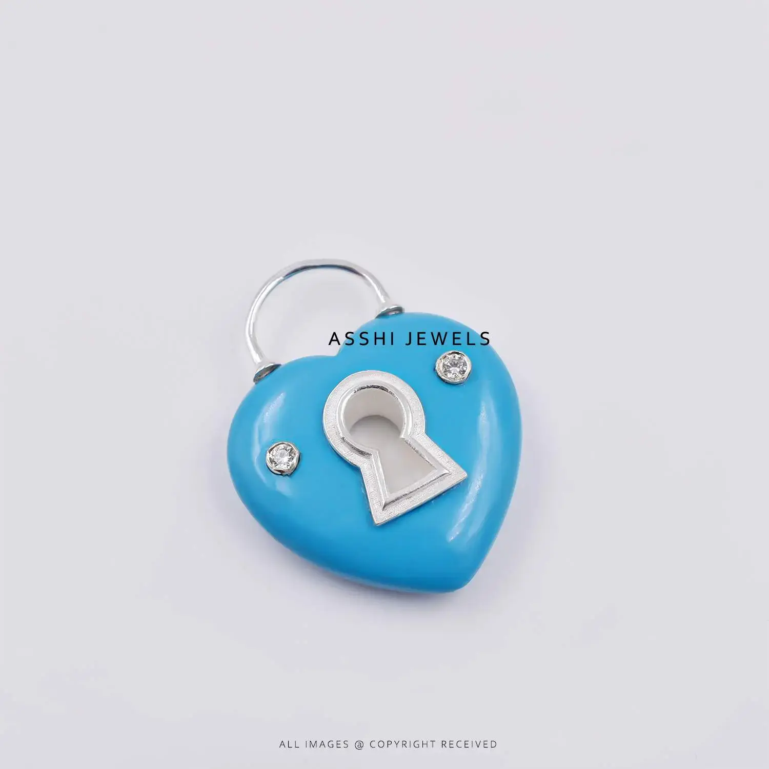 Embrace timeless elegance with this stunning 925 sterling silver padlock jewelry, featuring a vibrant turquoise heart centerpiece. Known for its captivating blue-green hues and natural marbling, the turquoise adds a pop of color and a touch of bohemian charm to the classic padlock design. Crafted from high-quality sterling silver, this piece offers durability with a polished finish that catches the light beautifully. Symbolizing love, protection, and individuality, this heart-shaped padlock is perfect as a pendant or charm for daily wear or meaningful gifting.