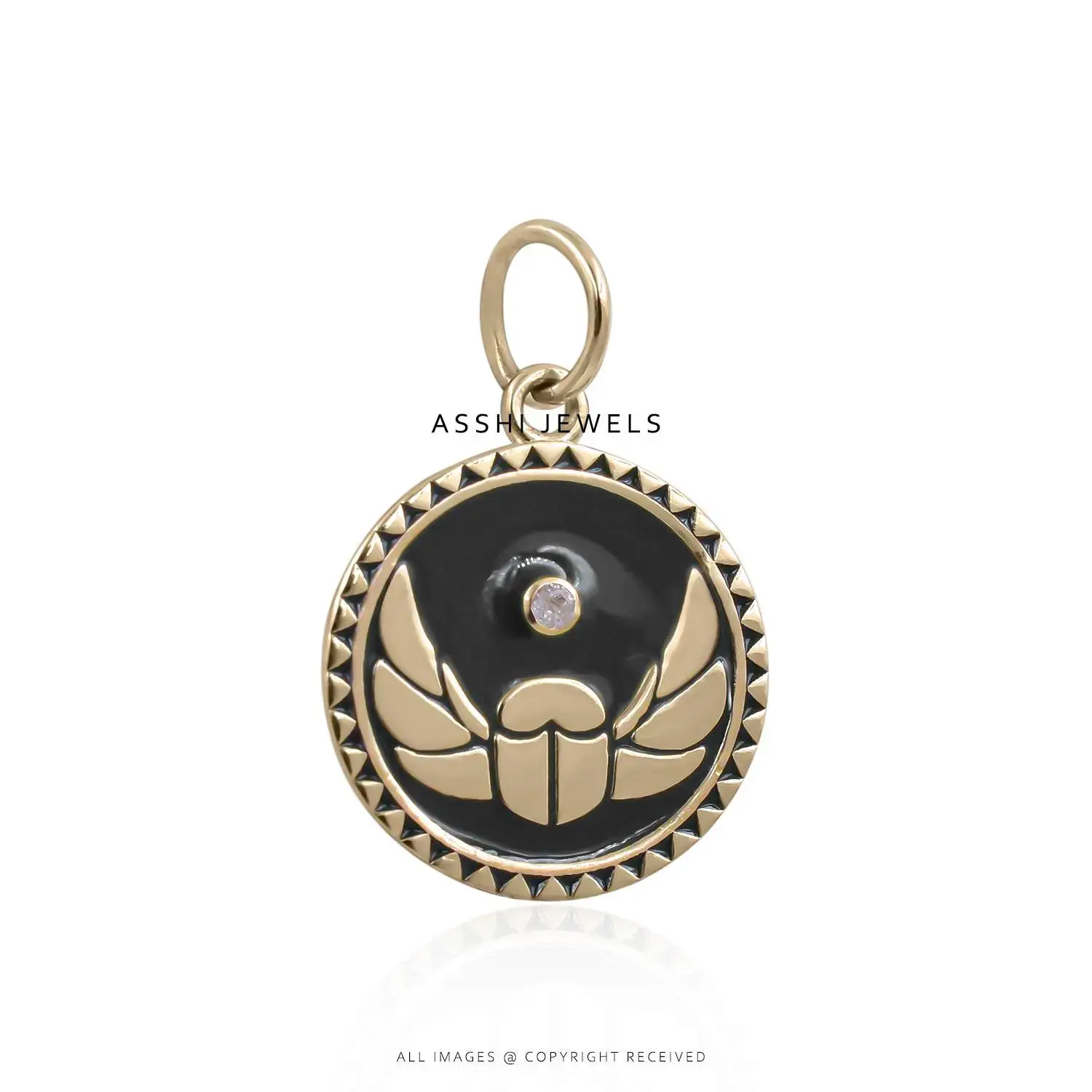 Crafted in solid 14K yellow gold, the high-polish finish pairs beautifully with the deep green enamel and shimmering diamonds, making it a standout piece for charm bracelets, necklaces, or as a meaningful gift—especially for Cancer zodiac signs or sea lovers.