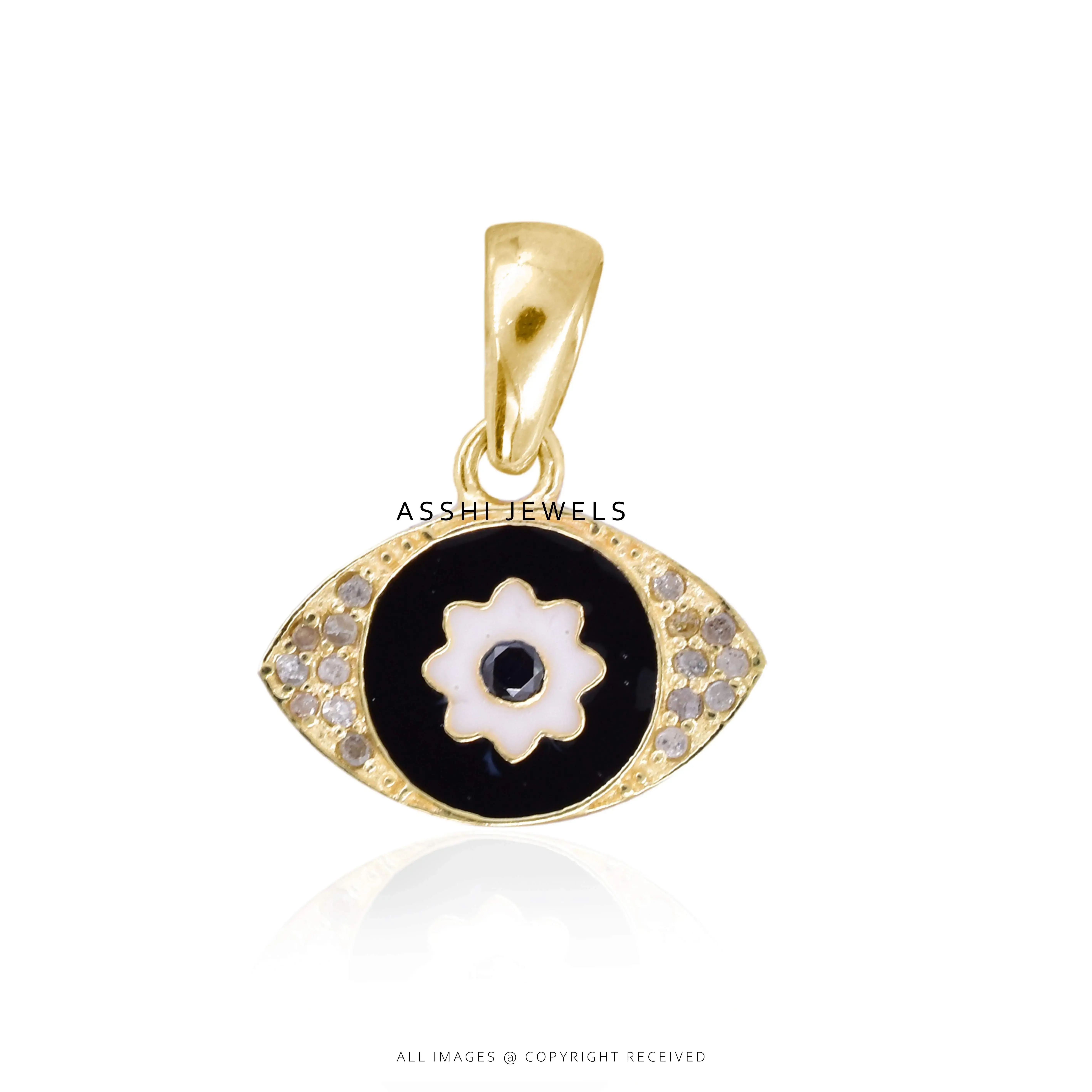Protect your style with a touch of sparkle and symbolism. This 14K Yellow Gold Plated Evil Eye Charm features vibrant enamel detailing and shimmering diamond accents, expertly crafted to ward off negativity while adding a chic statement to your jewelry collection.