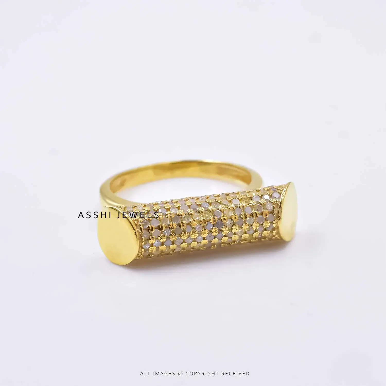 Elevate your everyday style with this stunning 14K Yellow Gold Plated Diamond Roller Ring. Crafted with precision and elegance, this unique piece features a smooth, rotating center band that adds a playful yet luxurious twist to a classic design.