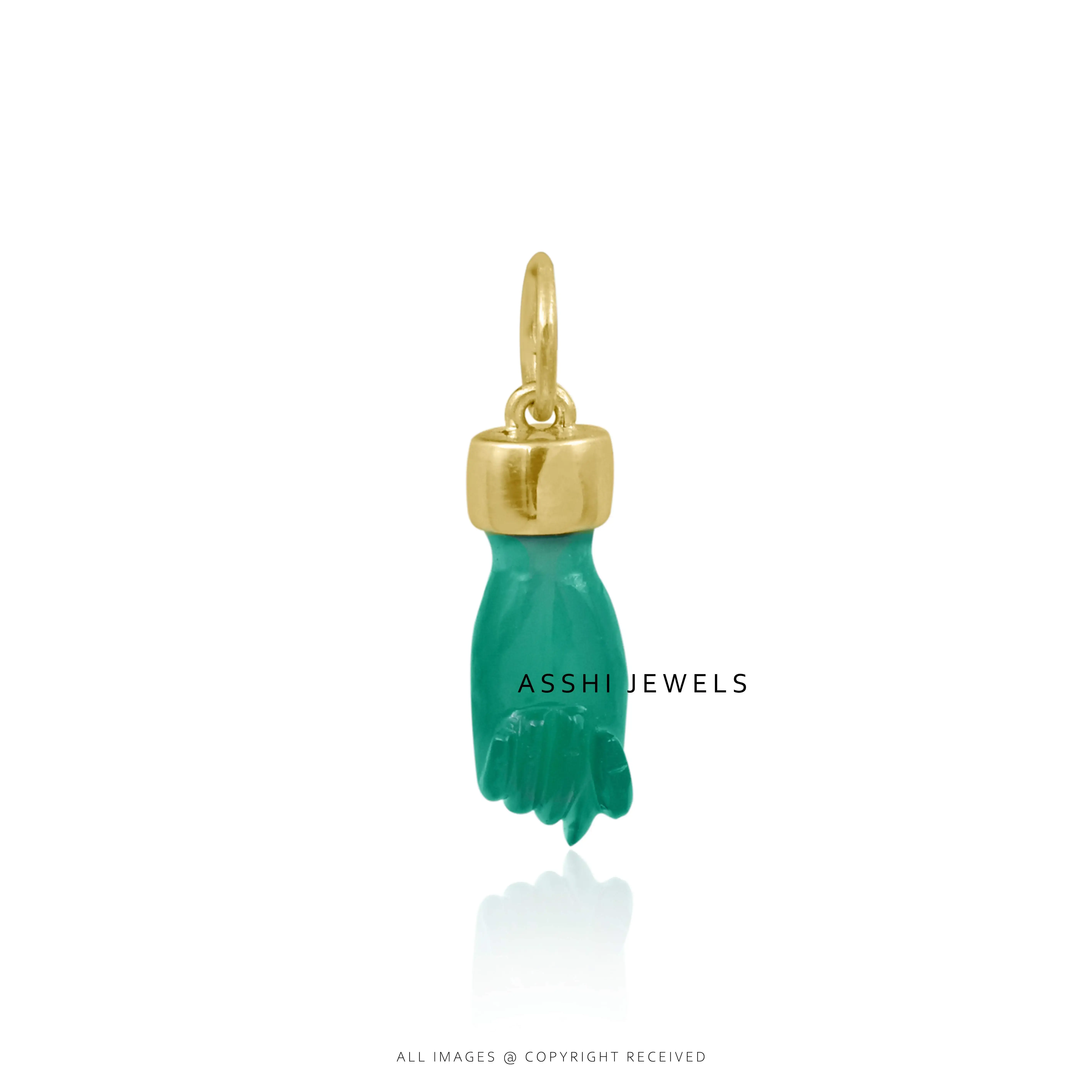 Infuse your style with meaning and elegance through this 14K Yellow Gold Plated Figa Charm, featuring a captivating green onyx gemstone. The Figa—a hand-shaped amulet historically believed to protect against negativity and bring good luck—combines powerful symbolism with modern sophistication.