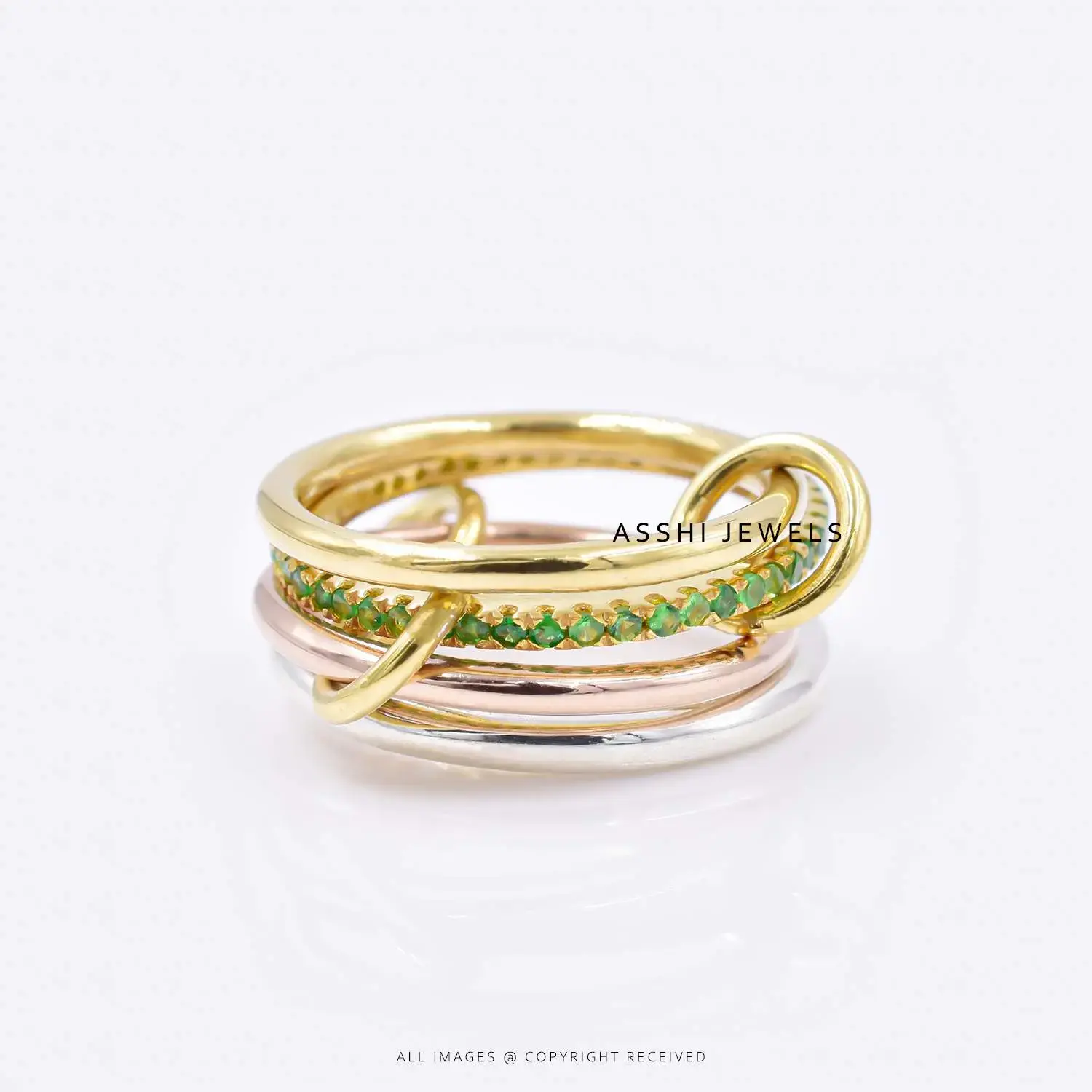 Add a touch of vibrant elegance to your collection with this 14K Yellow Gold Plated Tsavorite 4 Set Ring. This eye-catching piece features four interconnected bands, each carefully crafted for a seamless stackable look. Highlighted by radiant green tsavorite stones and finished in rich 14K yellow gold plating, it’s a unique blend of luxury and color.