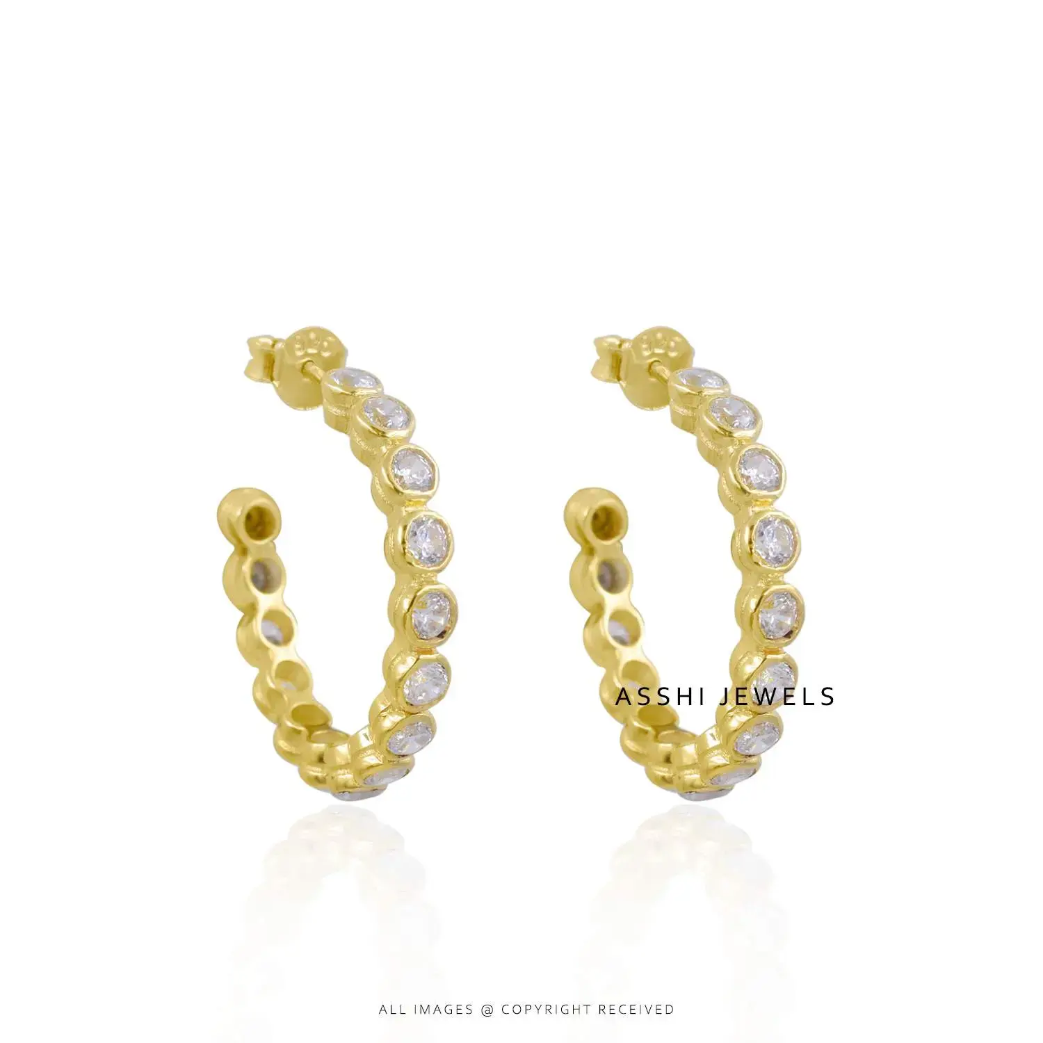 Timeless sparkle meets everyday elegance with these 14K Yellow Gold Plated White Cubic Zirconia Hoop Earrings. Crafted with a rich gold-plated finish, these classic hoops are adorned with brilliant white cubic zirconia stones that catch the light beautifully from every angle. The sleek, modern design offers a perfect balance of glamour and wearability—ideal for daily wear, special occasions, or gifting. Lightweight, secure, and effortlessly stylish, these hoops are a must-have in any jewelry collection.