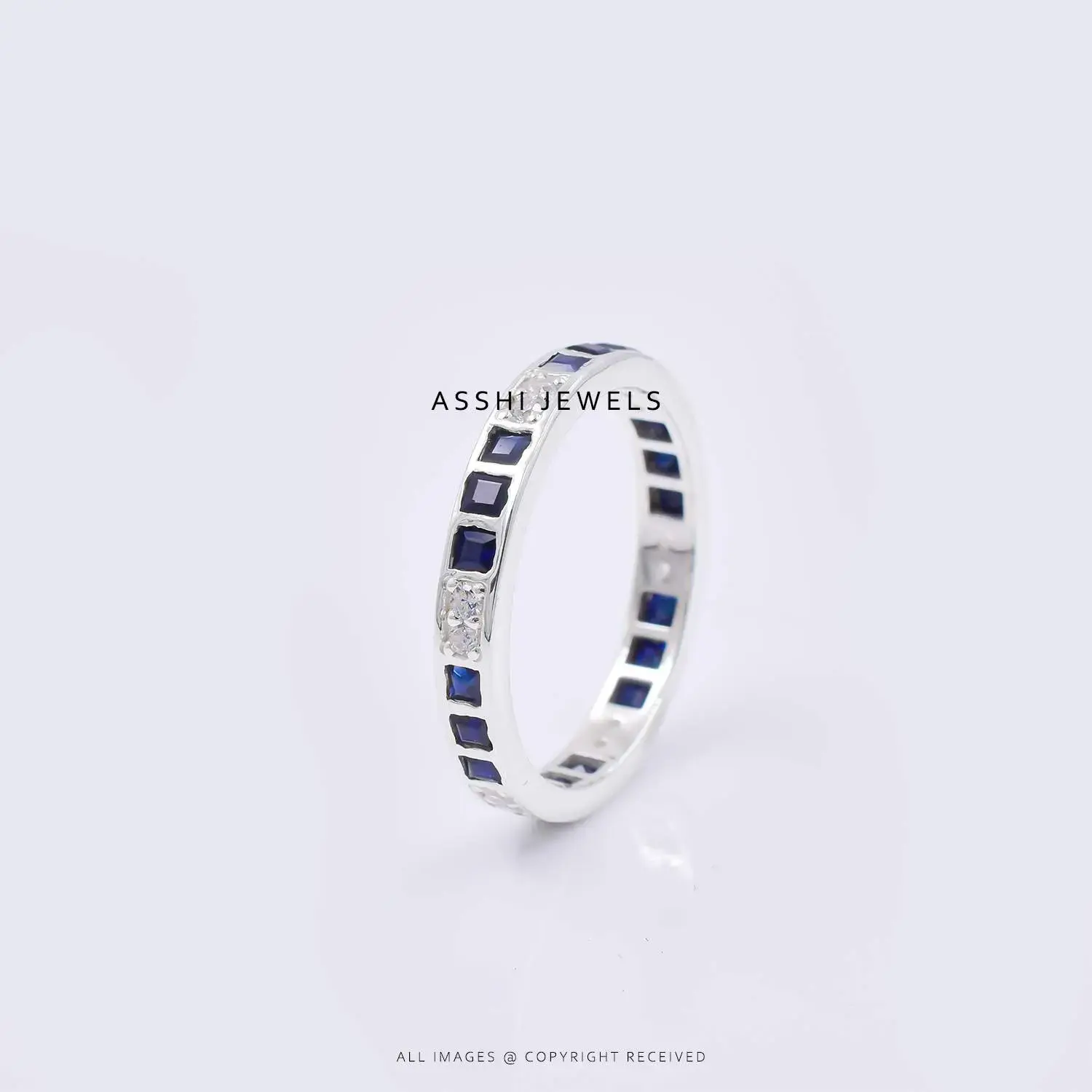 Crafted from genuine 925 sterling silver, this ring offers both quality and comfort. The alternating blue and white CZ stones give a bold yet elegant feel, perfect for both everyday glamour and special occasions. A modern classic for those who love color, sparkle, and timeless style.
