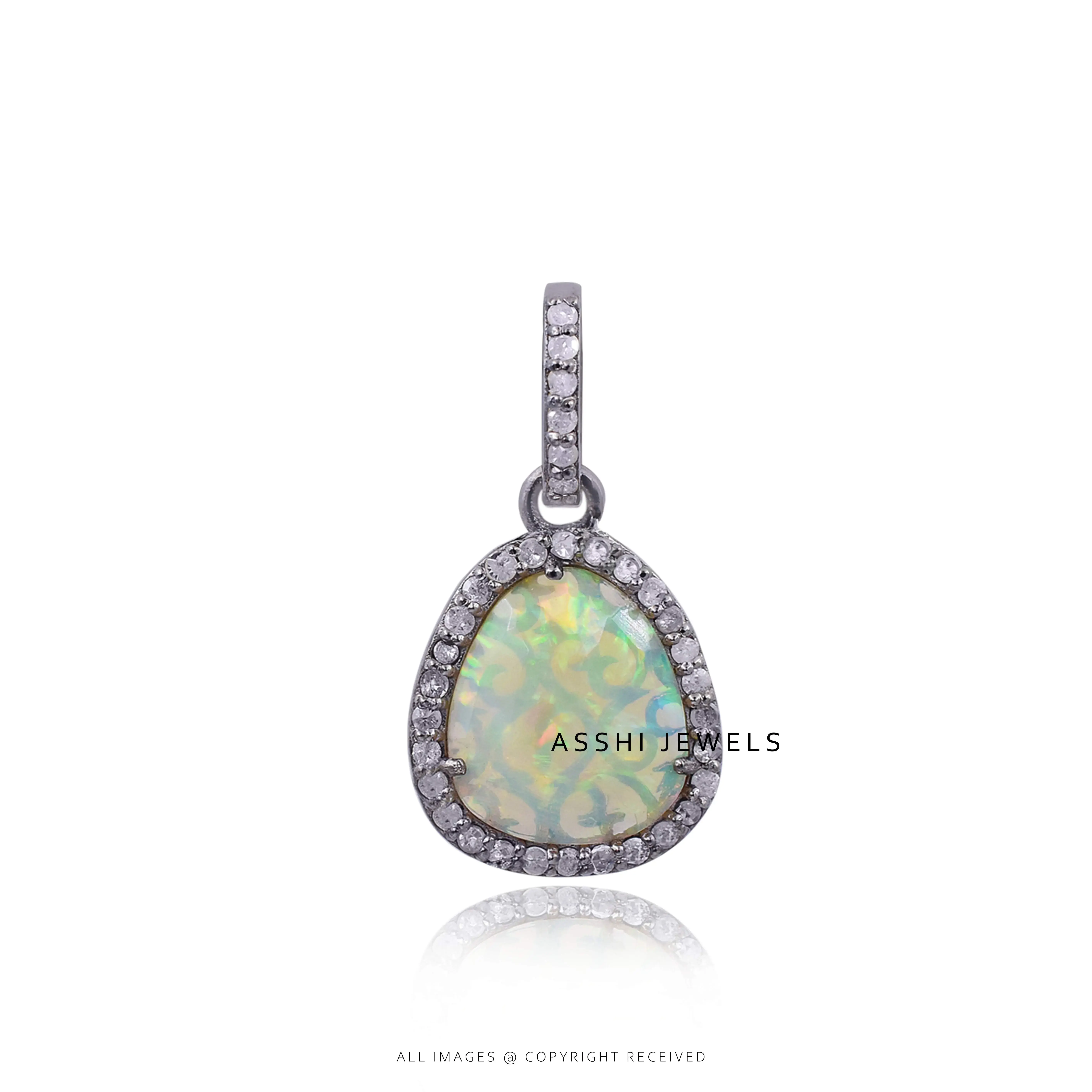Elevate your jewelry collection with this stunning 925 sterling silver charm, featuring a mesmerizing opal centerpiece surrounded by sparkling diamond accents. The opal’s vibrant play of colors beautifully contrasts with the polished silver, creating a captivating and elegant piece. Perfect for adding a touch of sophistication and mystical charm to your bracelets or necklaces, this versatile charm is designed for everyday wear or special occasions.