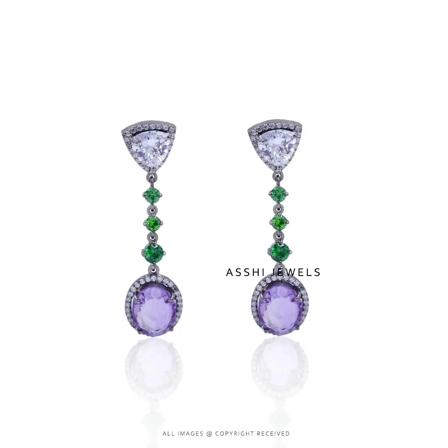 Add a fresh pop of color and sparkle to your look with these elegant 925 Silver Green & White Amethyst Cubic Zirconia Dangle Earrings. Crafted from high-quality sterling silver, these earrings feature a graceful drop design adorned with brilliant green and white amethyst-colored cubic zirconia stones. The contrasting hues create a striking yet refined look, perfect for both casual and formal occasions. Lightweight and eye-catching, these dangle earrings bring effortless elegance and charm to any outfit.