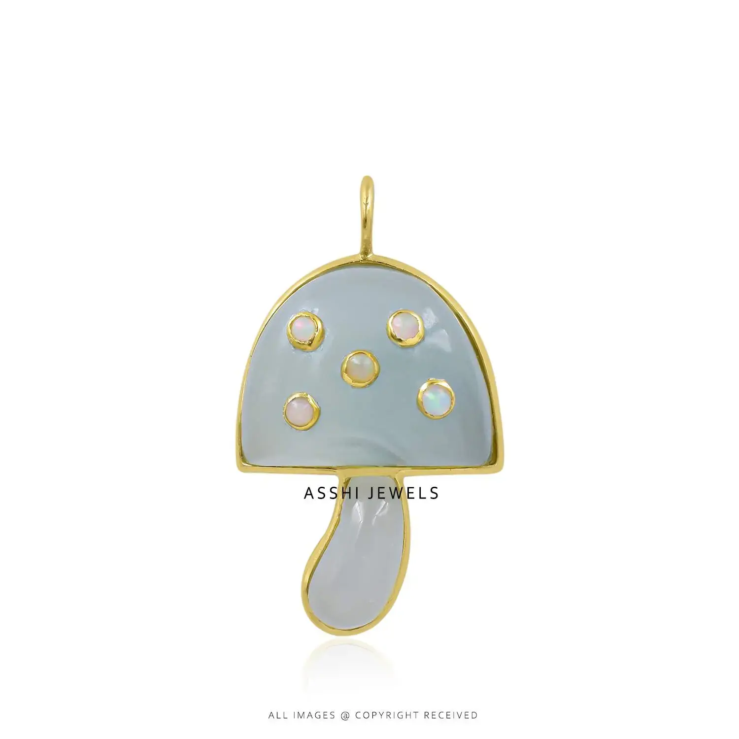 Add a dreamy touch of iridescent beauty and luminous elegance to your jewelry collection with this Silver Opal & Moonstone Mushroom Charm Pendant crafted in yellow gold-plated sterling silver. Expertly handmade from genuine 925 sterling silver, this enchanting piece features shimmering natural opal paired with glowing moonstone accents. The magical play of colors from the opal combined with the soft, ethereal glow of moonstone creates a captivating design that blends nature-inspired charm with refined sophistication.